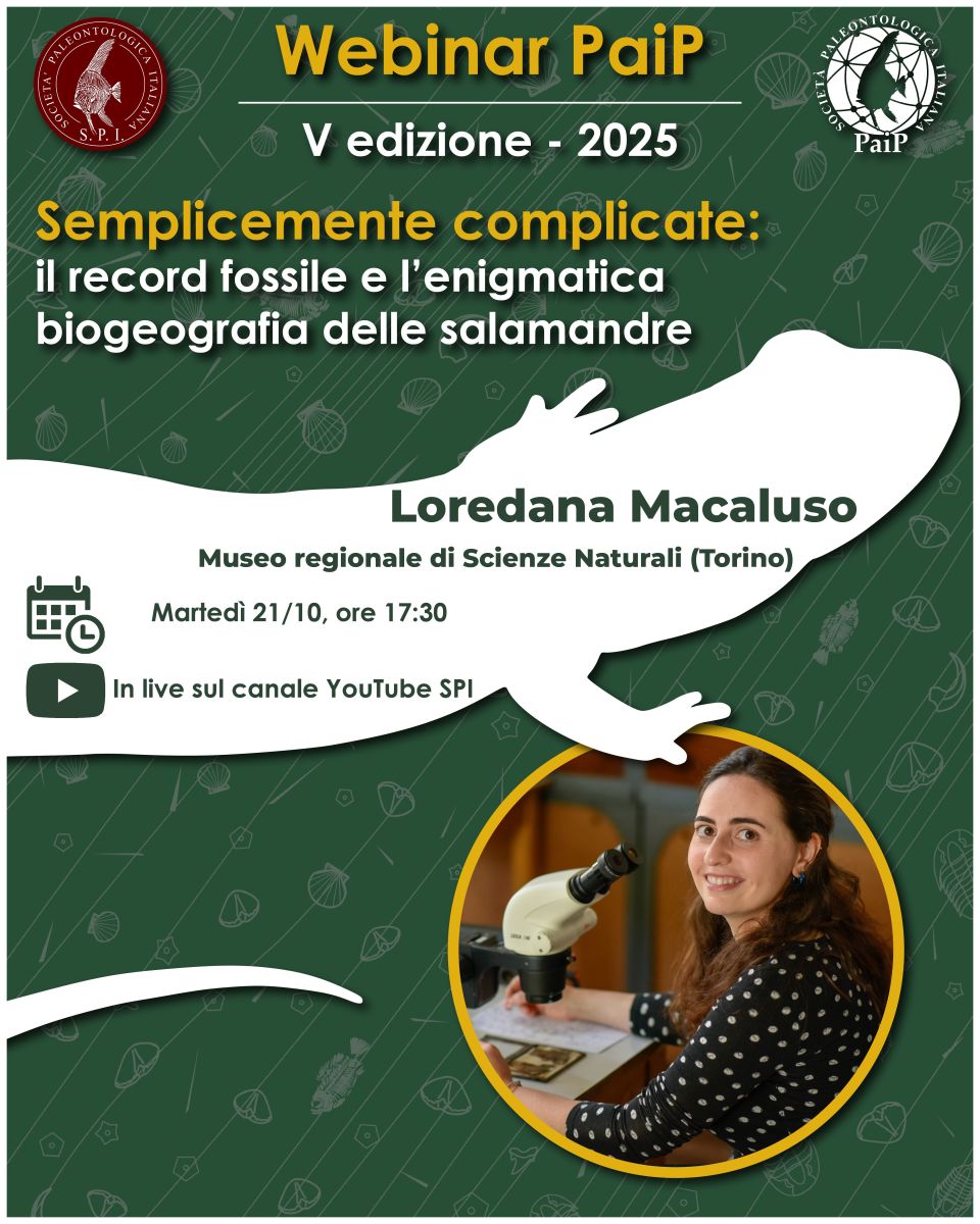 Su indicazione della Dott.ssa Emanuela Di Martino (Università di Catania), vi segnaliamo il secondo appuntamento della stagione 2025 dei webinar PaiP, dal titolo "Semplicemente complicate: il record fossile e l'enigmatica biogeografia delle salamandre".