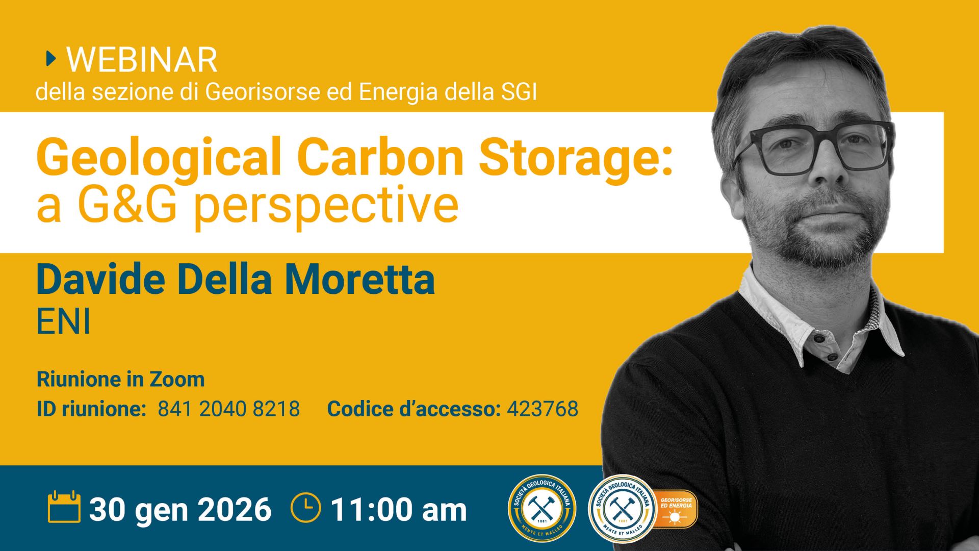 Argomento: Geological Carbon Storage: a G&G perspective.