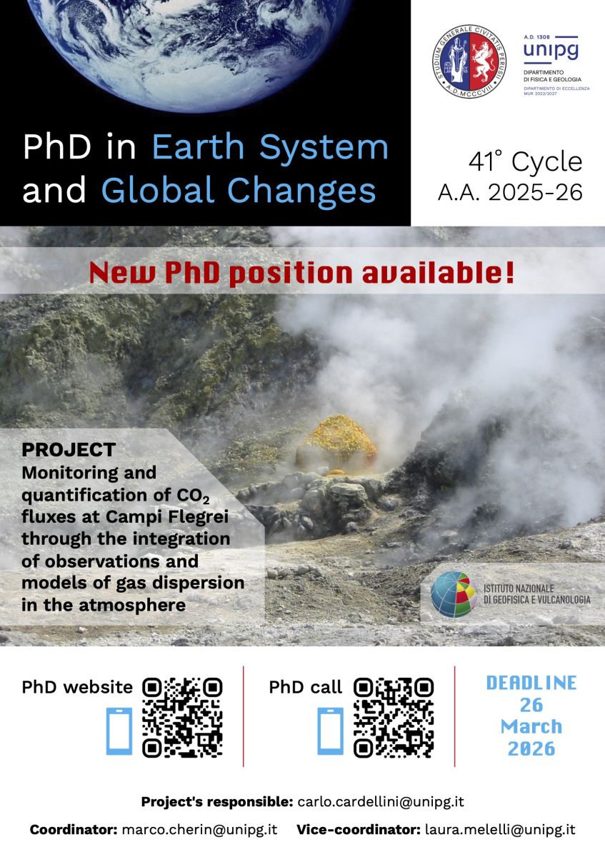 La borsa, dal titolo "Monitoring and quantification of CO2 fluxes in the Phlegraean Fields through the integration of observations and models of gas dispersion in the atmosphere" è finanziata dall'INGV.